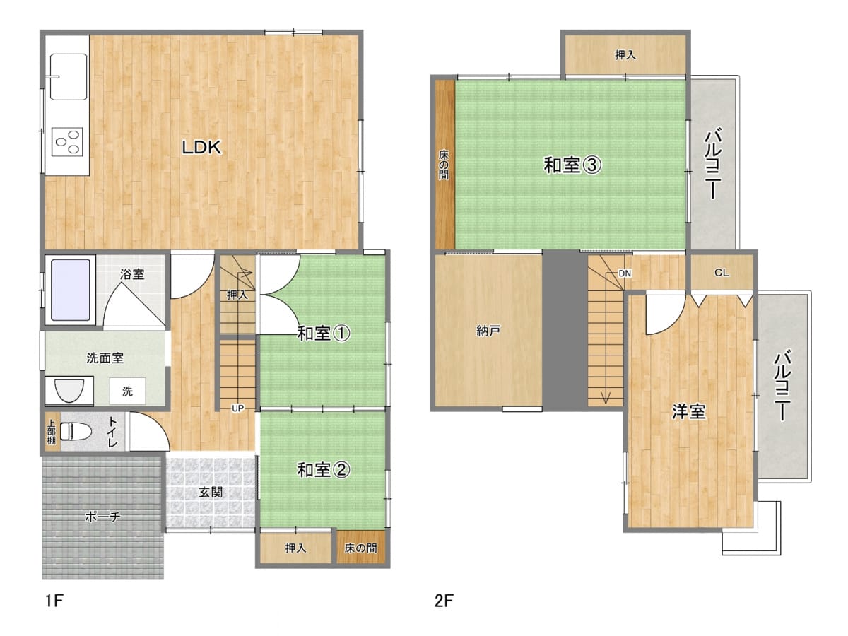 間取内容 LDK1階   和室1階 2室  洋室2階 1室  和室2階 1室  S2階 1室